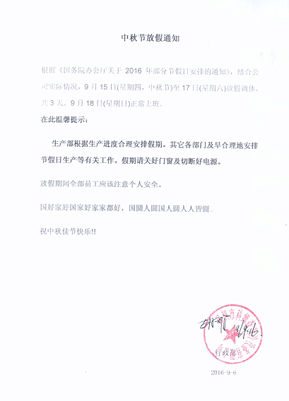科姆森集團中秋節放假通知